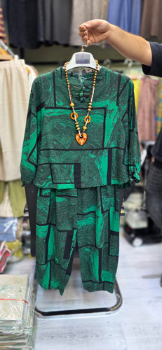 ست تونیک و شلوار وارداتی تناز جنس لنین بسیار با کیفیت شسته شده بدون آبرفت چهار فصل مناسب مهمونی و دور همی و مجلس و خانگی