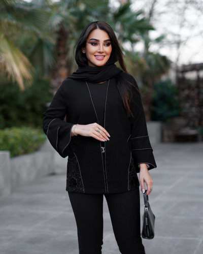 مانتو شیک با تیکه دوری ظریف مدل سارین کد 1022 نوروز 1405