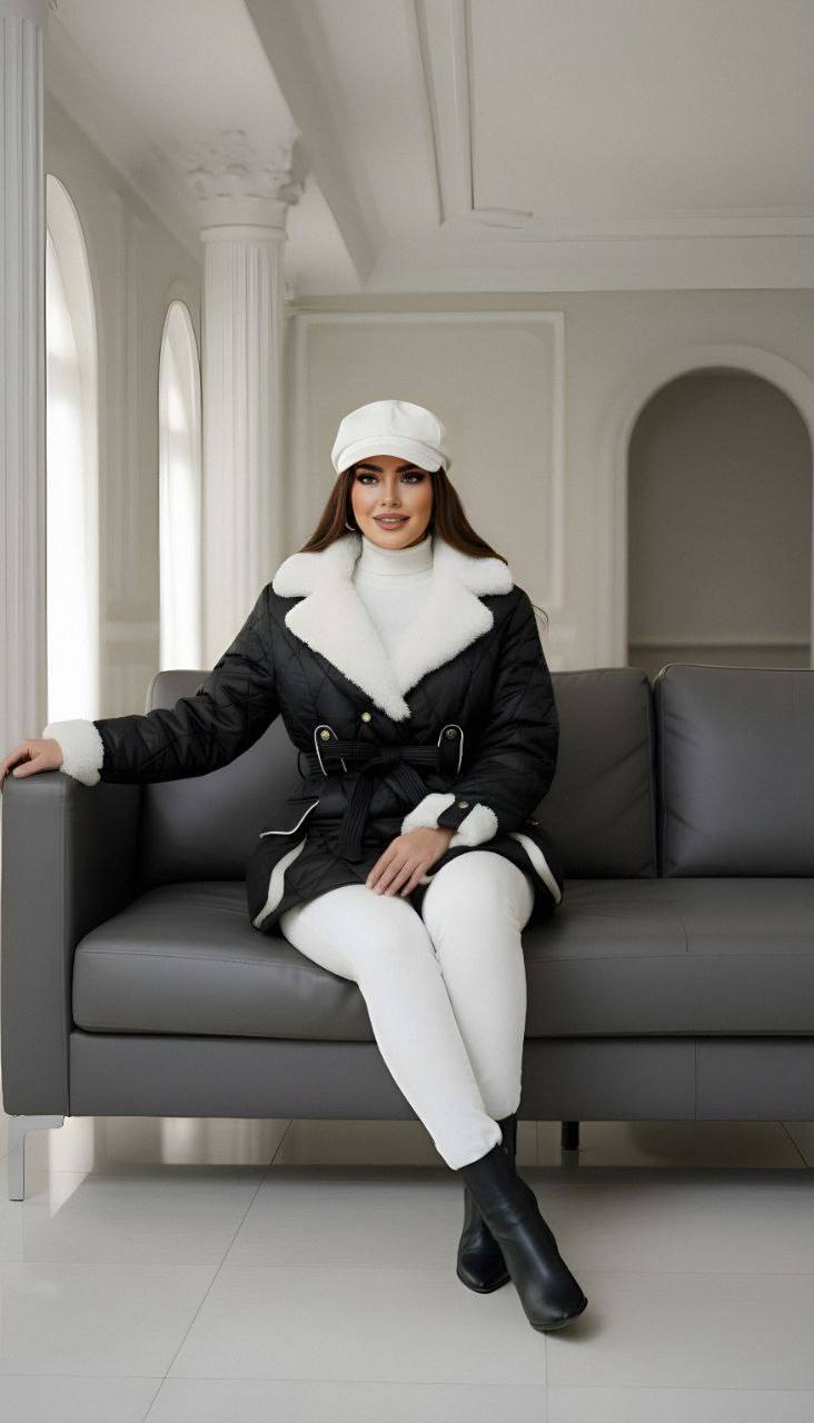 کاپشن پارچه مموری گلدوزی شده داخل کار پشم شیشه تمام آستر کشی یقه و آستین خز مدل امپراطور