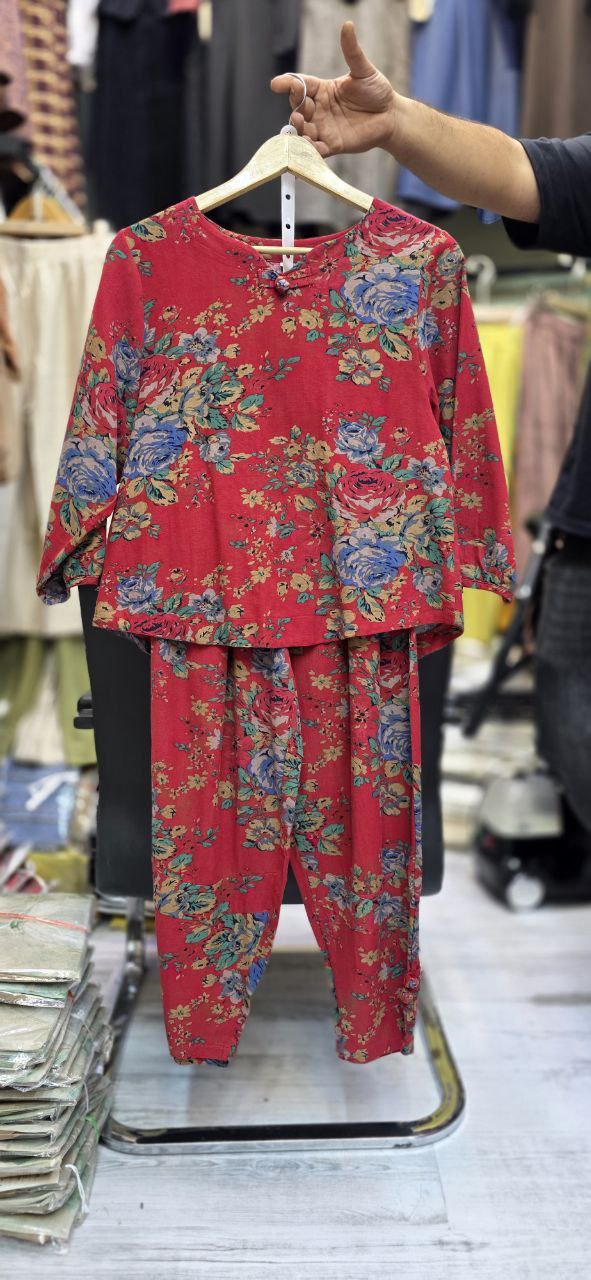جزئیات: در طرح ها و رنگ های متنوع ،بسیار شیک و خوش پوش مناسب زنانه و دخترانه چهار فصل و بسیار کاربردی،استین سه ربع و شلوار خمره ای