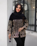 جزئیات: جزییات: تلفیق سنت و مدرنیته طرح اسلیمی با رنگ طلایی روی زمینه مشکی ؛ دارای قزن مخفی (تنخور عالی 🅰️ -تضمین کیفیت دوخت مزونی 🅰️)