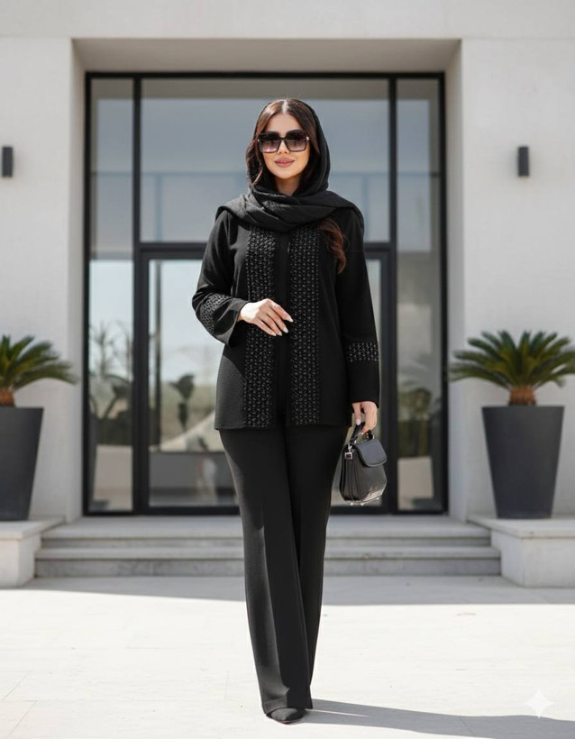 جزئیات: طراحی منحصربهفرد با پنلهای عمودی که باعث خوشفرمی و کشیدگی اندام میشود. دارای قزن مخفی (تنخور عالی 🅰️ - تضمین کیفیت دوخت 🅰️)