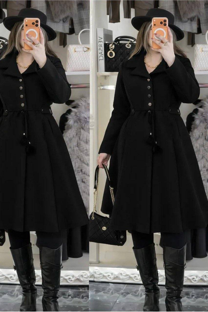 جزئیات: ✨قد110 ✨قد آستین 60 ✨دکمه کاربردی ✨کمردار ✨دور سینه 110 ، مناسب فصل پاییز و زمستان