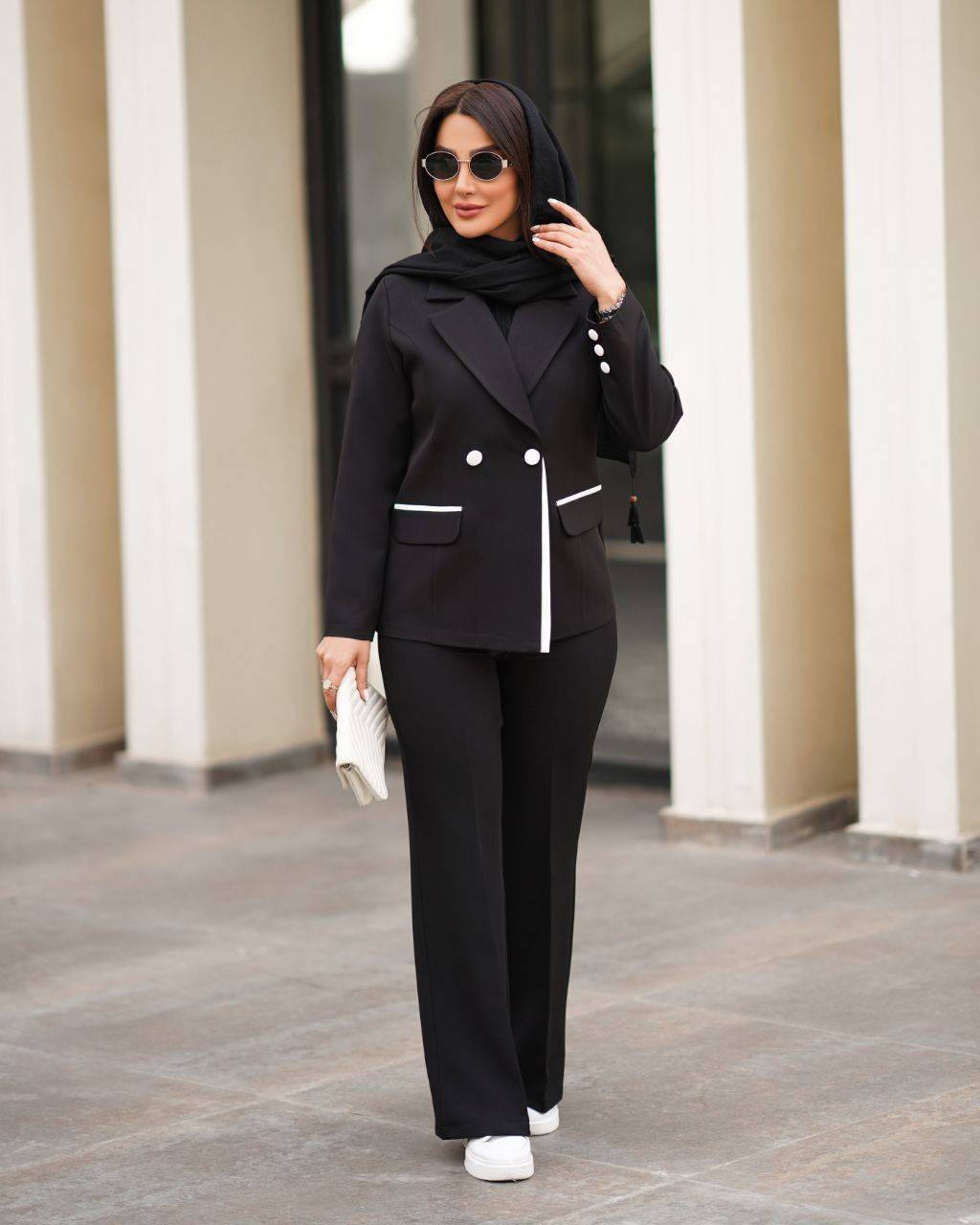 اندازه: قدکت حدودا ۶۵ قدشلوار۱۰۵ دمپاشلوار۶۰ قداستین ۵۵✔️ 💫 دورسینه سایز۱=۹۲ دوربازو:۳۸ دورران:۶۲ ✔️ 💫دورسینه سایز۲=۹۸ دوربازو:۴۰ دورران:۶۳✔️ 💫دورسینه سایز۳=۱۰۴دوربازو:۴۲ دورران :۶۶✔️ ✅️جلوی کت تماما لایی خورده ✅️دارای جیب کاربردی