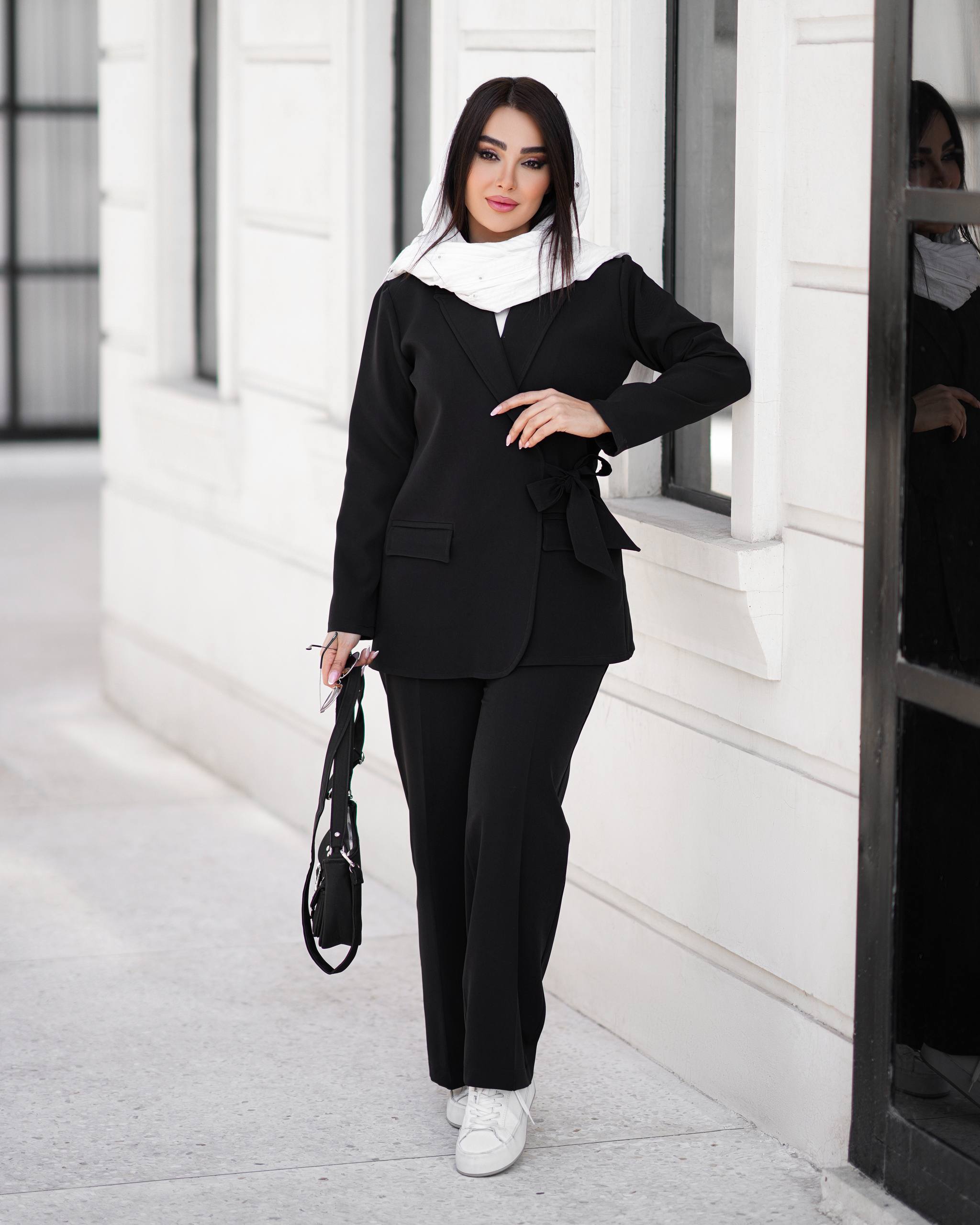 جزئیات: یقه بلیزر کمر پاپیونی مناسب بهاره با کیفیت عالی پیش کار و یقه و سجافها کلا لایی پرشین کار شده✅ قدکت حدودا ۷۵ قد شلوار ۱۰۵ شلوار نیم بگ راسته جیب و زیپ دارد