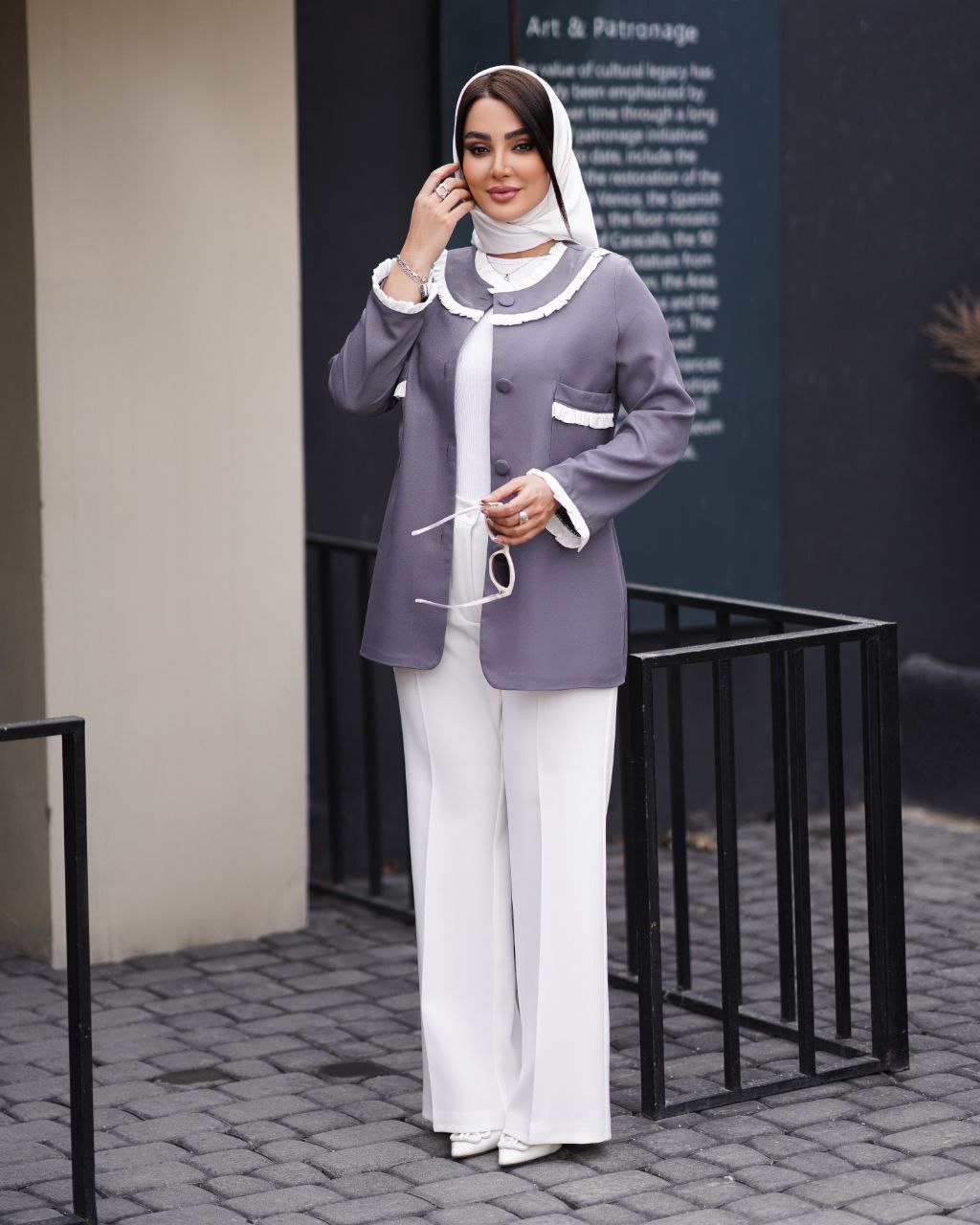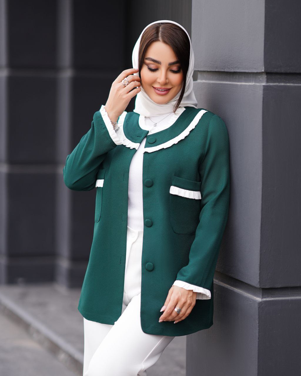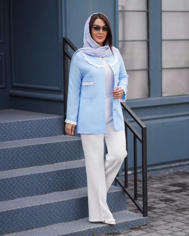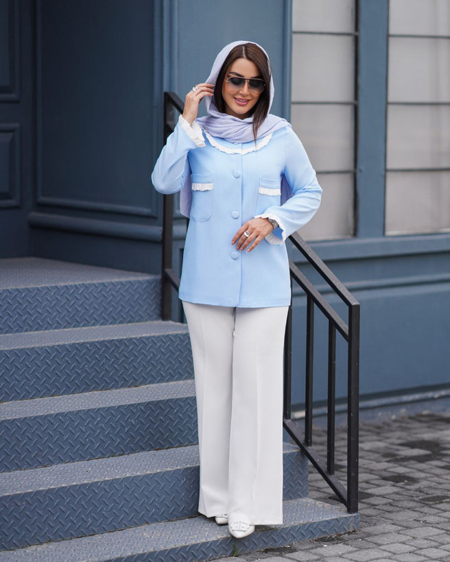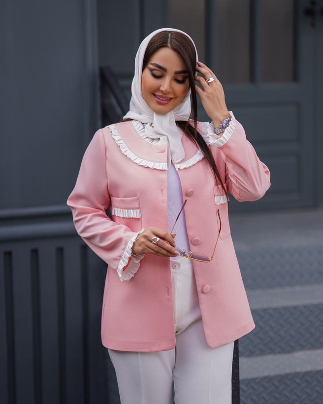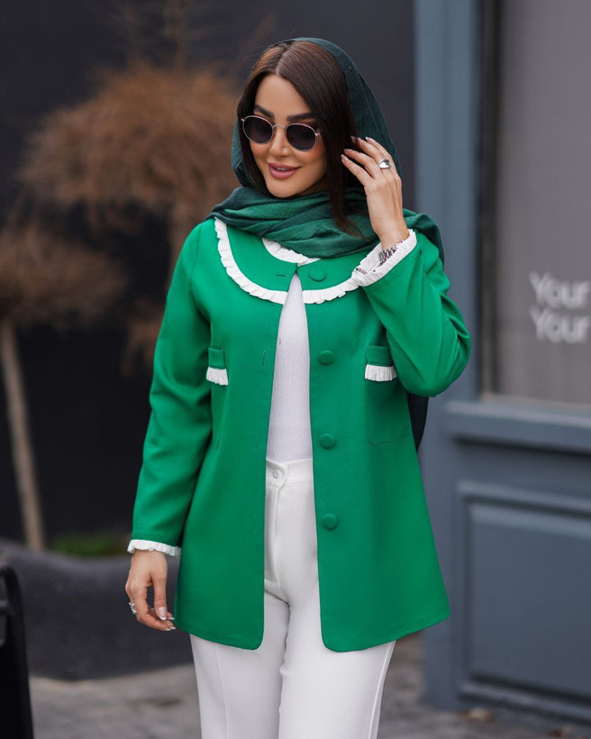 جزئیات: جلوی کار،برای استایل بهتر،، لایی پرشین دارد جلوی کت با دکمه بسته میشود ، قد کت ۷۳ ، بسیار شیک