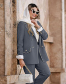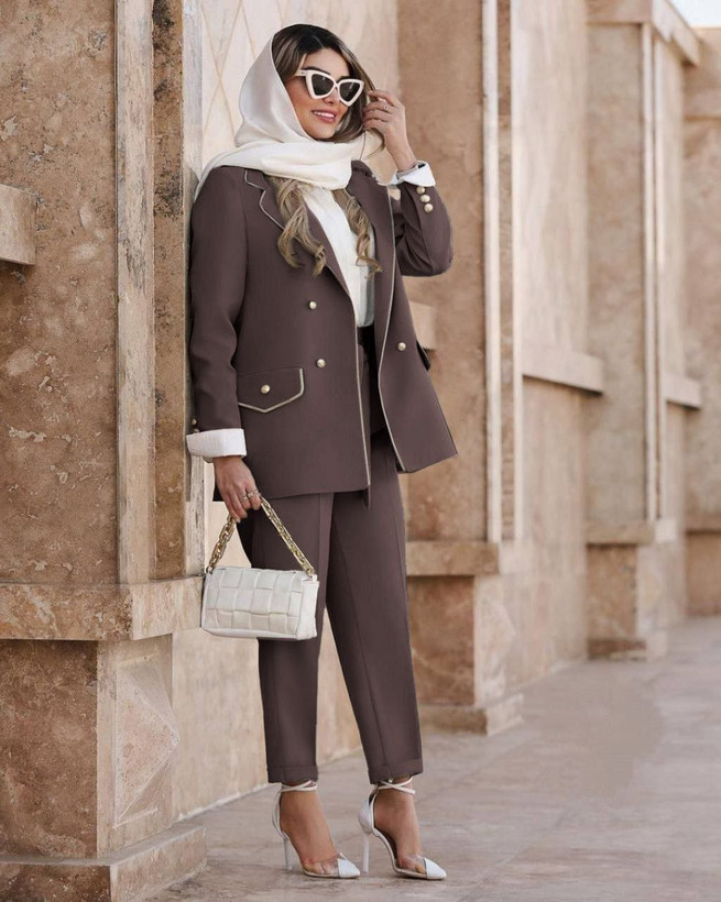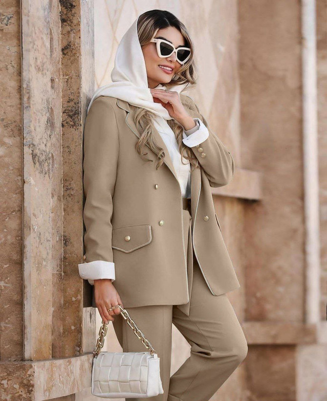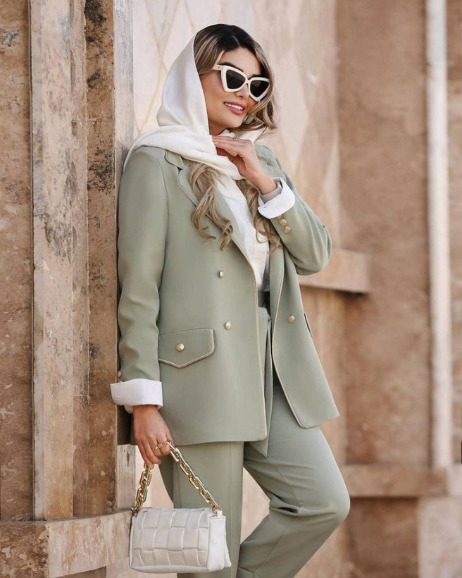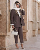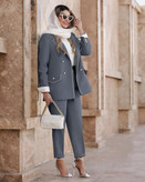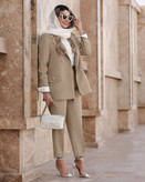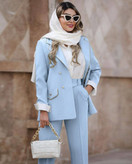 جزئیات: دور سینه 100 110 دور کمر 94 104 دور بازو 36 39 دور باسن 106 116 دور ران 67 71 ، جلو کار لایی پرشین دارد ، قد کت ۷۷ ، قد شلوار ۹۷ ، دوسایزی