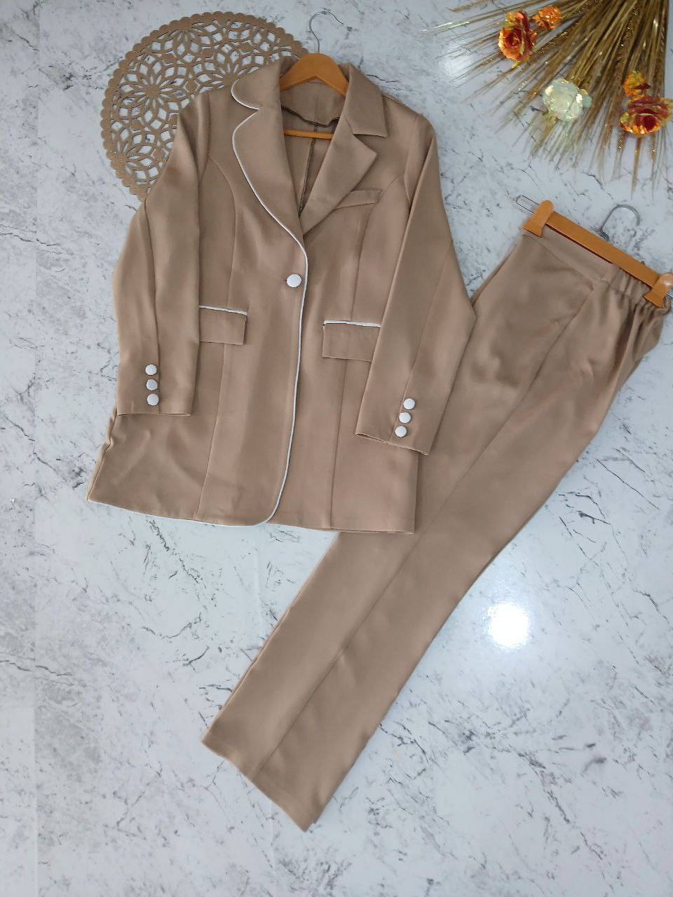 جزئیات: 🌿کتشلواربا دوخت فوقالعاده عالی 🌿جلو کت لایی کار شده 🌿دکمه جلو کاربردی 🌿شلوار دمپا 🌿قد کت ۸۰ 🌿قد شلوار ۱۰۲ 🌿سایزبندی: ۱=۳۶_۴۲(دورسینه ۱۰۰) ۲=۴۴_۴۸(دورسینه ۱۱۲) 🌿قد آستین۶۰ 🌿کمر شلوار کش (جلو زیپ و دکمه دارد) 🌿جیب کت کاربردی
