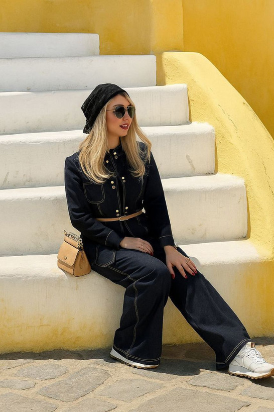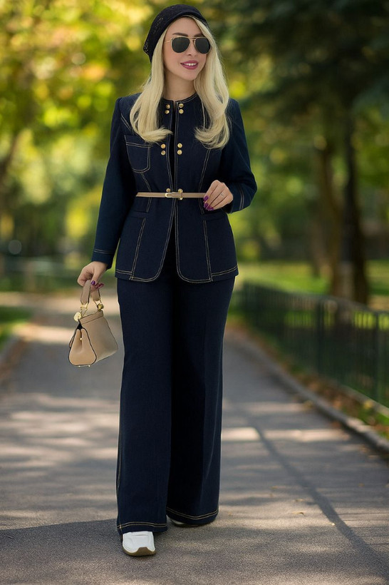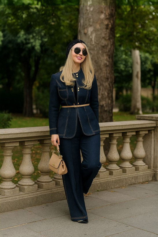 جزئیات: سایزبندی1.2.3 قد کت75 قدشلوار105 بدون کمربند شلوار جیب دار قابل استفاده جلو شلوار زیپ و دکمه و پشت شلوار کش دارد
