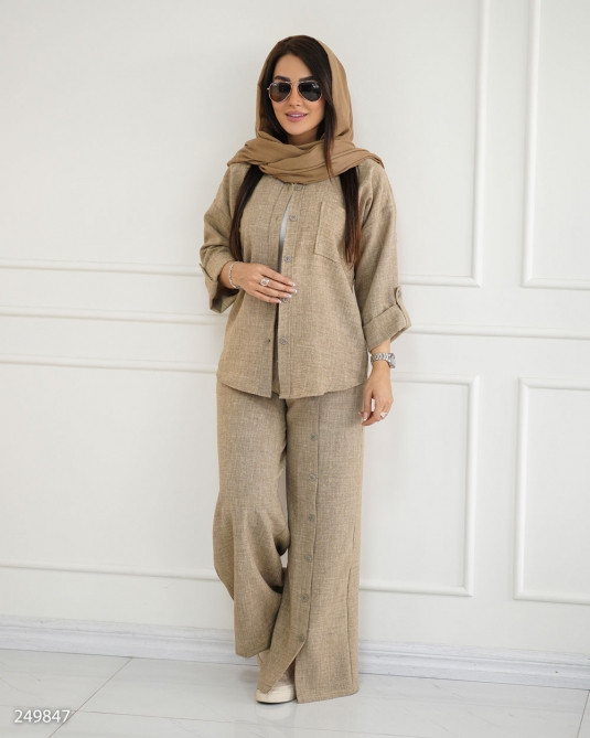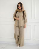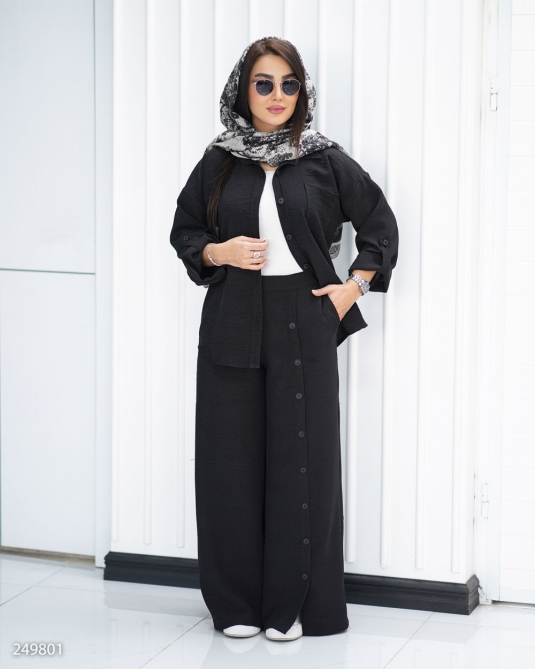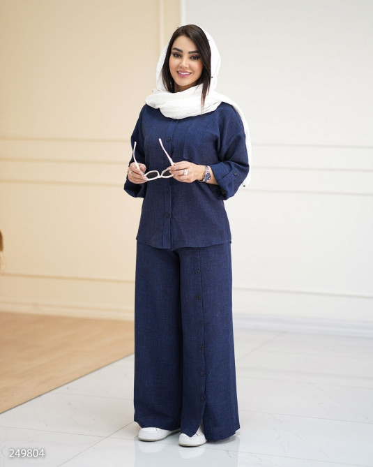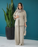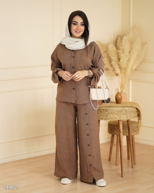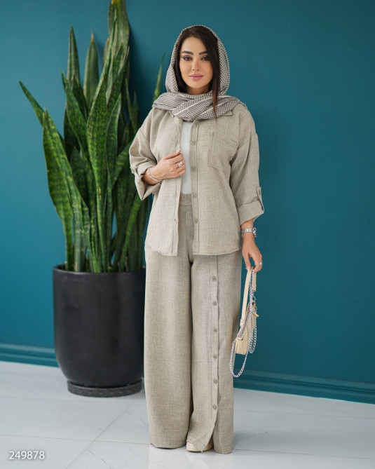 جزئیات: قد کار کوتاه، بسته شدن دکمه،جیب روی سینه،مدل یقه مردانه،مناسب فصل تابستانه بهاره،قد آستین بلند، یقه مردانه آستین پاگون دار ، بسته شدن دکمه شلوار پشت کمرکش شلوار جیب دار دمپا چاکدار دکمه نما روی شلوار