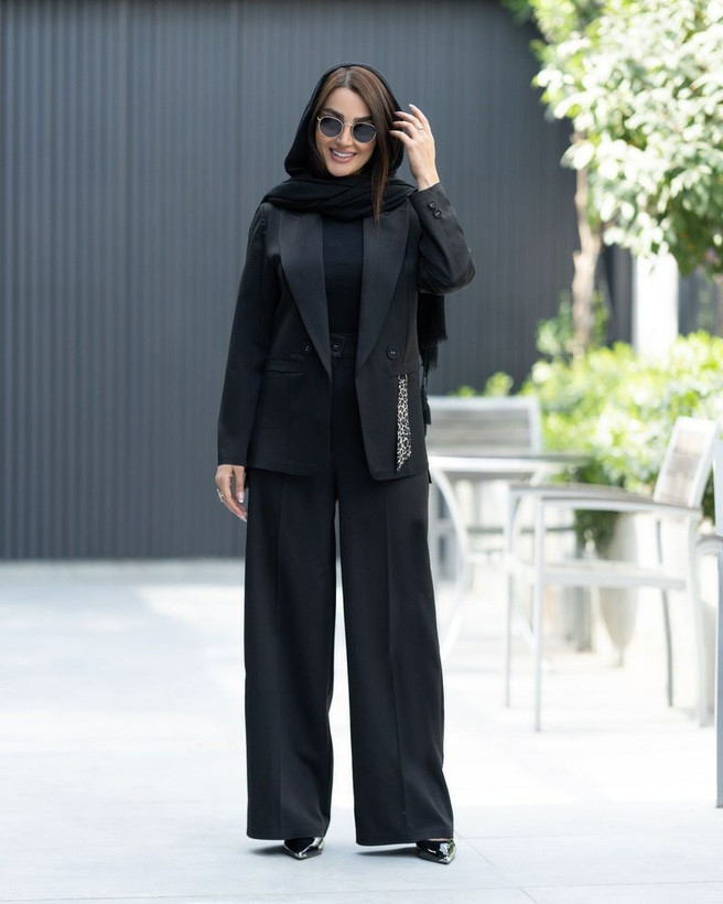 جزئیات: یقه بلیزری ، قد کت ۶۵ ، قد شلوار ۱۱۰ ، دو سایزی ، بسیار شیک و جذاب