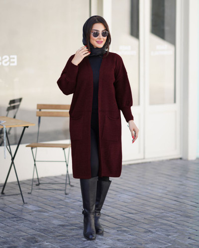 مانتو بافت بلند جلوباز شیک با جنس نخ آکریلیک بسیار باکیفیت مناسب فصل پاییز و زمستان
