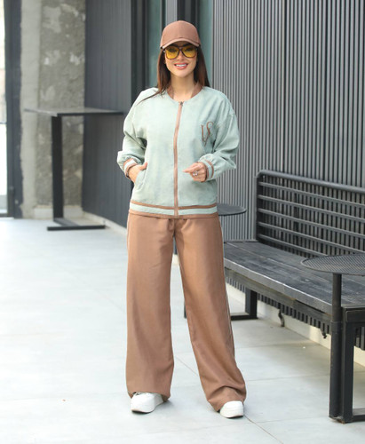 ست بامبر جکت و شلوار جنس کتان مخملی ترک مناسب چهار فصل بسیار شیک برای استایل روزمره