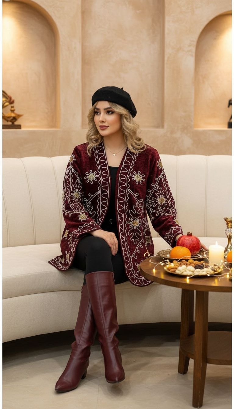کت یقه گرد مخمل با خرج کار هندی نوروز ۱۴۰۵