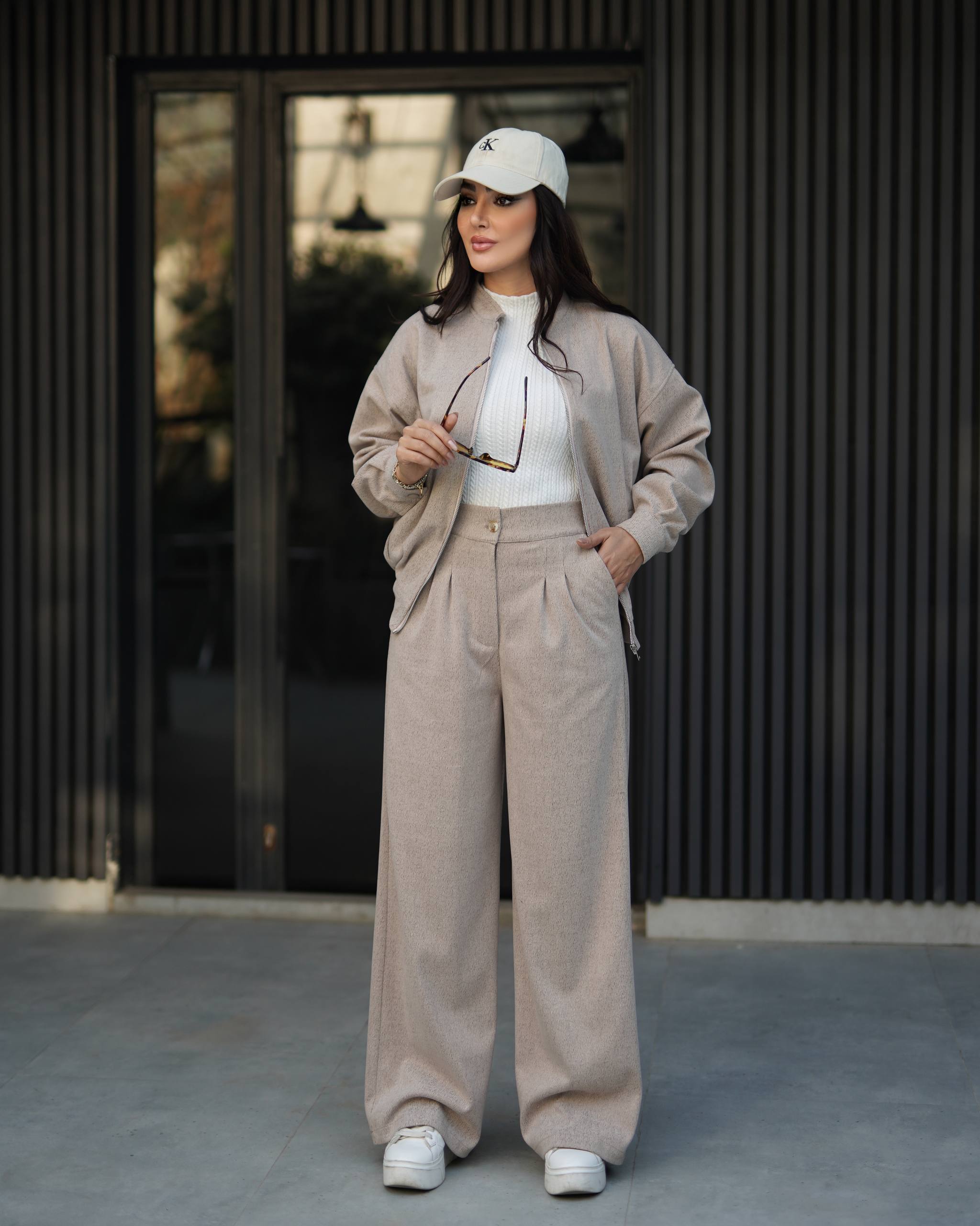 ست بامبر جکت و شلوار جنس کتان مخملی ترک مناسب چهار فصل بسیار شیک برای استایل روزمره